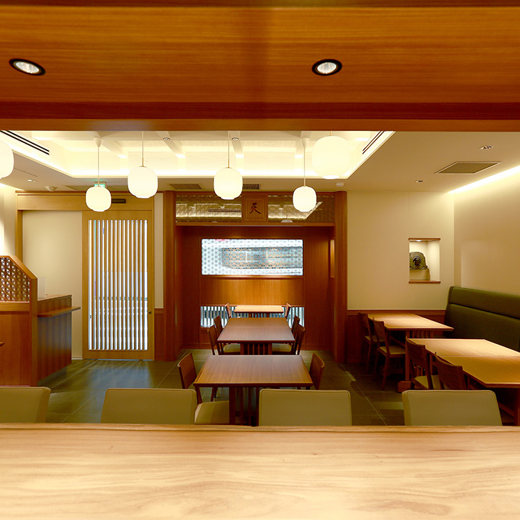 広々としたくつろぎの空間で、できたての天ぷらをお楽しみ頂けます。