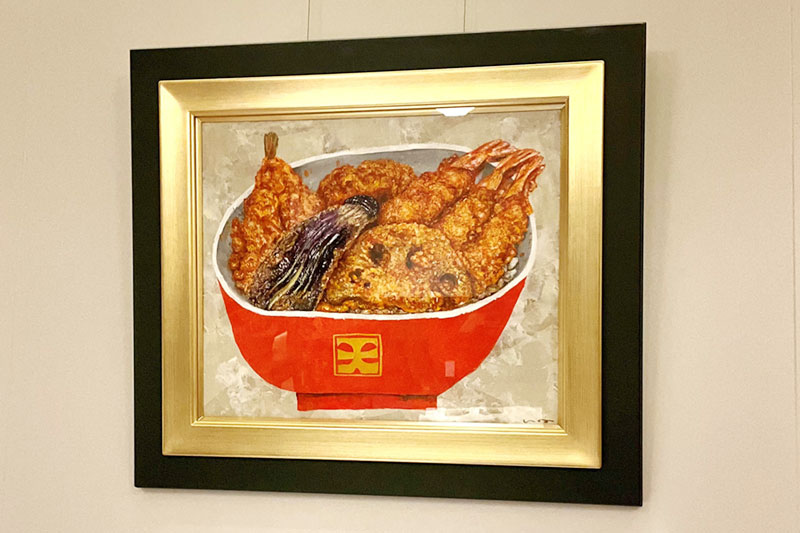 イベントに先駆けて、記念の一環として、はらぺこめがね様に描いていただきました天丼の絵を店内に飾っております。